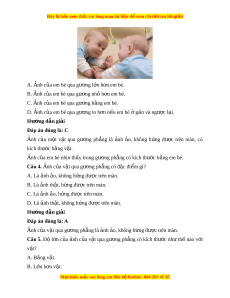Đây là bản xem th , vu ử i lòng mua tài li u ệ đ xe ể m chi ti t (c ế ó l i ờ gi i ả ) A. nh c Ả a ủ em bé qua gư ng ơ l n h ớ n em ơ bé. B. nh c Ả a em ủ bé qua gư ng nh ơ h ỏ n ơ em bé. C. nh c Ả a em ủ bé qua gư ng b ơ ng ằ em bé. D. nh c Ả a ủ em bé qua gư ng ơ to h n n ơ u em ế bé g ở n và ầ ngư c l ợ i ạ . Hư ng d ớ ẫn gi i ả Đáp án đúng là: C nh Ả c a ủ m t ộ v t ậ qua gư ng ơ ph ng ẳ là nh ả o, ả không h ng ứ đư c ợ trên màn, có kích thư c ớ b ng v ằ t ậ . nh c Ả a