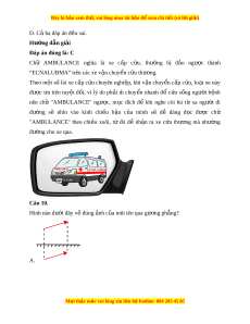 ạ sao chữ AMBULANCE trên đ u ầ xe c u ứ thư ng ơ l i ạ đư c ợ vi t ế ngư c ợ t ph ừ i ả sang trái? A. Để trang trí cho đ p. ẹ B. Vì đây là xe c a n ủ ư c ớ ngoài. C. Vì để ngư i ờ lái xe nhìn th y ấ từ đúng trong gư ng ơ chi u ế h u ậ c a ủ họ và như ng ờ đư ng cho xe qua ờ trư c. ớ M i