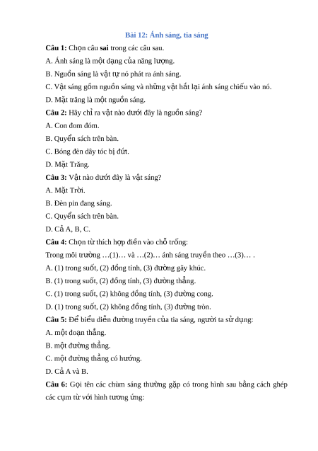 Câu 6: G i tên các chùm sáng th ng g p có trong hình sau b ng cách ghépọ ườ ặ ằ