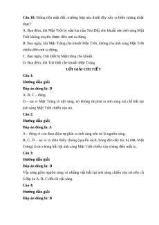 D. Ban đêm, khi Trái Đất che khuất M t ặ Trăng. L I Ờ GIẢI CHI TI T Ế Câu 1: Hư ng ớ d n gi ẫ i ả Đáp án đúng là: D A, B, C – đúng D – sai vì M t ặ Trăng là v t