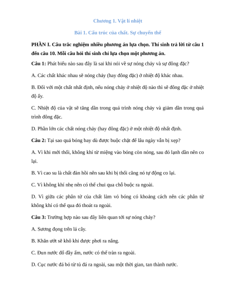 Bài 1. Cấu trúc của chất. Sự chuyển thể