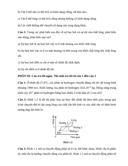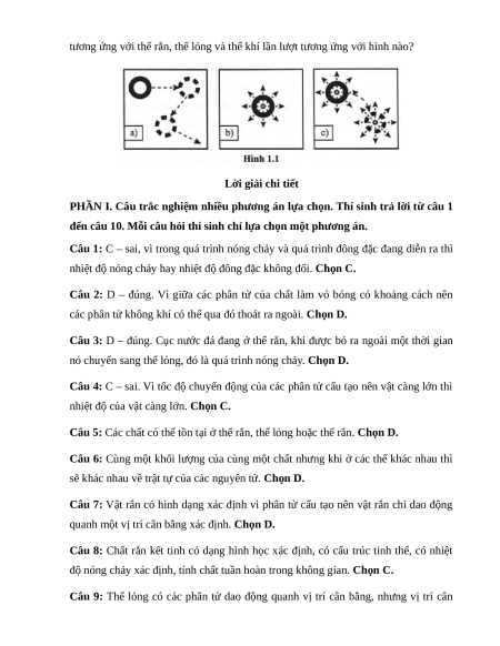 Câu 3: Hình 1.1 mô tả chuyển động phân tử ở các thể khác nhau. Hình cầu là phân