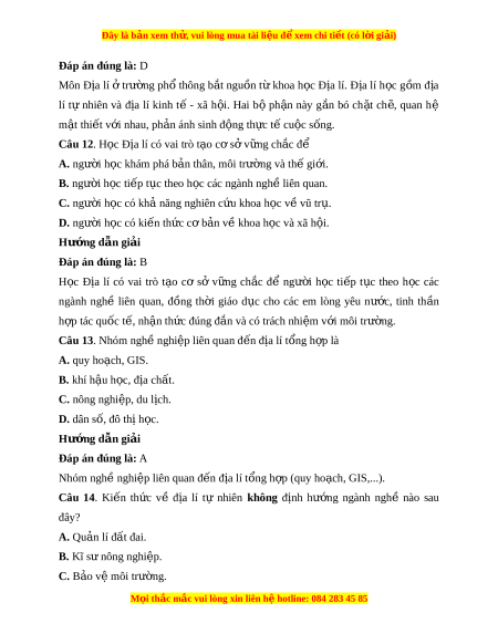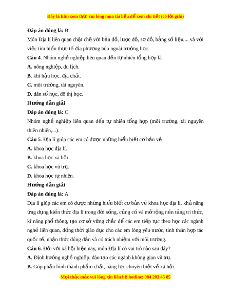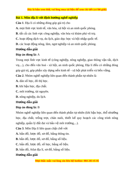 Đây là bản xem th , vu ử i lòng mua tài li u ệ đ xe ể m chi ti t (c ế ó l i ờ gi i ả ) Bài 1. Môn đ a l ị í v i ớ đ n ị h hư ng ngh ớ nghi ề p ệ