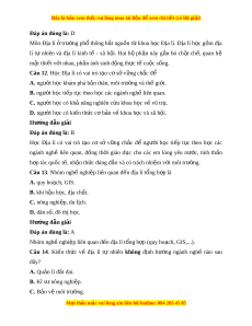 D. dân số h c, đô t ọ hị h c. ọ Hư ng d ớ ẫn gi i ả Đáp án đúng là: C Nhóm nghề nghi p ệ liên quan đ n ế tự nhiên t ng ổ h p ợ (môi trư ng, ờ tài nguyên thiên nhiên,...).