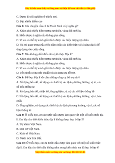 ọ ốt môn Địa lí, các em cần n m ắ ch c các ắ khái ni m ệ c b ơ n ả và kĩ năng ch y ủ u t ế rong môn h c. ọ Vi c n ệ m ắ v ng các khái ữ ni m ệ c b ơ n ả s gi ẽ úp các em có kh năng ả gi i ả thích và ng x ứ khi ử g p ặ các hi n t ệ ư ng t ợ hiên nhiên di n ễ ra hàng ngày trong cu c s ộ ống. Đáp án cần ch n ọ là: A Câu 5: Muốn h c Đ ọ ịa lí đ t