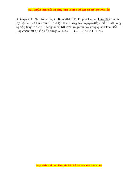 Đây là bản xem th , vu ử i lòng mua tài li u ệ đ xe ể m chi ti t (c ế ó l i ờ gi i ả ) Xô th c hi ự n t ệ rong nh ng ữ năm 50-70 c a ủ th k ế X ỉ X? A. Ti p t ế c ụ u t ư iên phát tri n công nghi ể p n ệ ng ặ B. Th c hi ự n t ệ hâm canh trong s n ả xu t ấ nông nghi p ệ C. Đẩy m nh t ạ i n b ế khoa h ộ c ọ - kĩ thu t ậ
