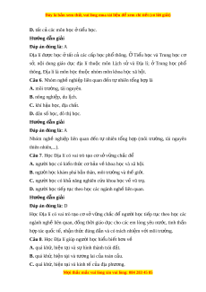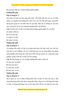 B. nông nghiệp, du lịch. C. khí h u h ậ c, ọ đ a ị ch t ấ . D. dân số h c, ọ đô thị h c. ọ Hư ng ớ d n gi ẫ i ả Đáp án đúng là: A Nhóm nghề nghi p ệ liên quan đ n ế tự nhiên t ng ổ h p ợ (môi trư ng, ờ tài nguyên thiên nhiên,...). Câu 7. H c Đ ọ ịa lí có vai trò t o c ạ ơ s v ở ng ữ ch c đ ắ ể A. ngư i ờ h c ọ có ki n t ế h c c ứ b ơ n ả v khoa h ề c ọ và xã h i ộ . B. ngư i ờ h c khám ọ phá b n ả thân, môi trư ng ờ và th gi ế i ớ . C. ngư i ờ h c ọ có kh năng nghi ả ên c u ứ khoa h c v ọ ề vũ tr . ụ D. ngư i ờ h c ọ ti p ế t c t ụ heo h c các ọ ngành ngh l ề iên quan. Hư ng ớ d n gi ẫ i ả Đáp án đúng là: D H c ọ Đ a ị lí có vai trò t o ạ c ơ s ở v ng ữ ch c ắ đ ể ngư i ờ h c ọ ti p ế t c ụ theo h c ọ các