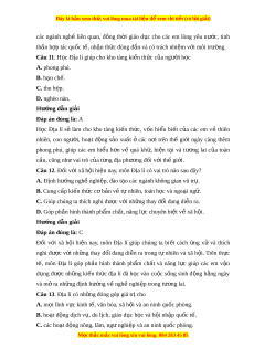 Câu 1. Địa lí cung cấp ki n t ế h c, c ứ s ơ khoa h ở c ọ và th c t ự i n v ễ ề A. các y u t ế ố sinh h c, ọ kinh t - ế xã h i ộ và môi trư ng ờ trên Trái Đ t ấ . B. các y u t ế ố s h ử c, ọ khoa h c xã h ọ i ộ và môi trư ng t ờ rên Trái Đ t ấ . C. các y u t ế ố t nhi ự ên, kinh t - ế xã h i ộ và môi trư ng t ờ rên Trái Đ t ấ . D. các y u t ế ố lí h c, khoa h ọ c ọ trái đ t ấ và môi trư ng t ờ rên Trái Đ t ấ . Hư ng ớ d n gi ẫ i ả Đáp án đúng là: C Địa lí cung c p ấ ki n ế th c, ứ cơ sở khoa h c ọ và th c ự ti n ễ về các y u ế tố tự nhiên, kinh t - ế xã h i ộ và môi trư ng ờ trên Trái Đ t ấ .