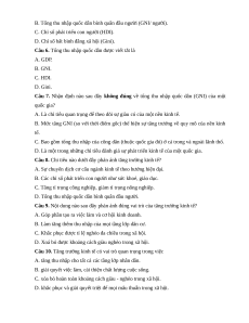 Câu 6. Tổng thu nhập quốc dân được viết tắt là A. GDP. B. GNI. C. HDI. D. Gini.