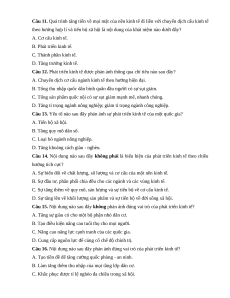 Câu 11. Quá trình tăng tiến về mọi mặt của nền kinh tế đi liền với chuyển dịch cấu kinh tế