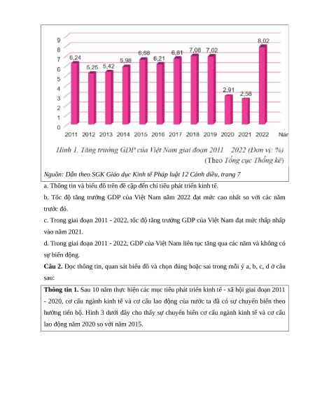 Câu 1. Đọc thông tin, quan sát biểu đồ và chọn đúng hoặc sai trong mỗi ý a, b, c, d ở câu sau: