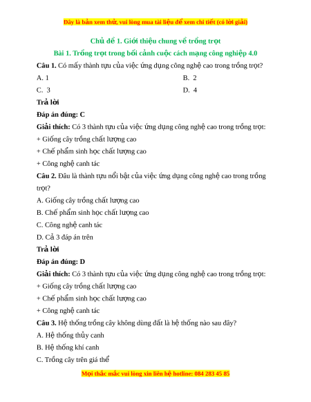 Đây là bản xem th , vu ử i lòng mua tài li u ệ đ xe ể m chi ti t (c ế ó l i ờ gi i ả ) Chủ đ 1. G ề i i ớ thi u chung v ệ t ề r ng t ồ r t ọ Bài 1. Tr ng ồ tr t ọ trong b i ố c nh cu ả c
