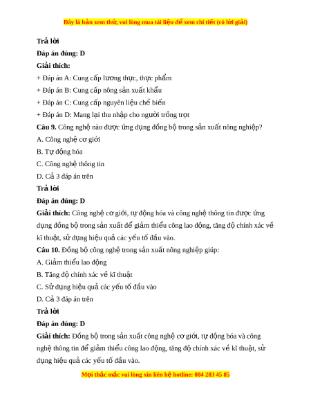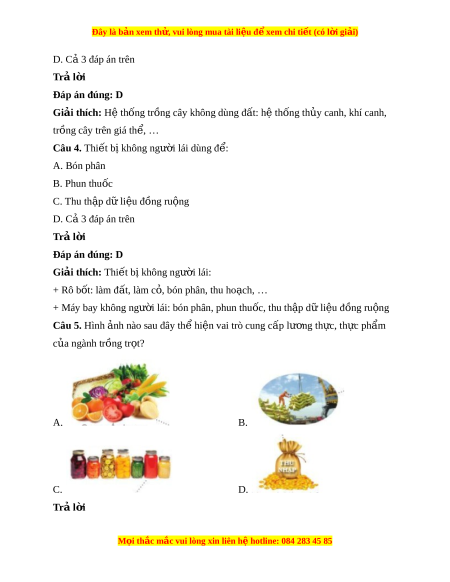 Đây là bản xem th , vu ử i lòng mua tài li u ệ đ xe ể m chi ti t (c ế ó l i ờ gi i ả ) A. B. C. D. Trả l i ờ Đáp án đúng: C Giải thích: + Đáp án A: Cung c p l ấ ư ng ơ th c, ự th c ph ự m ẩ
