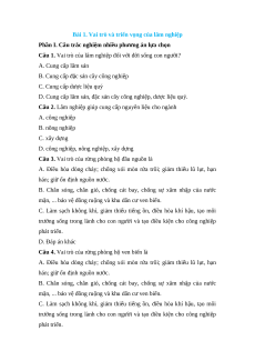 Câu 1. Vai trò của lâm nghiệp đối với đời sống con người? A. Cung cấp lâm sản