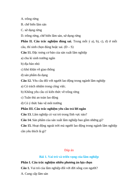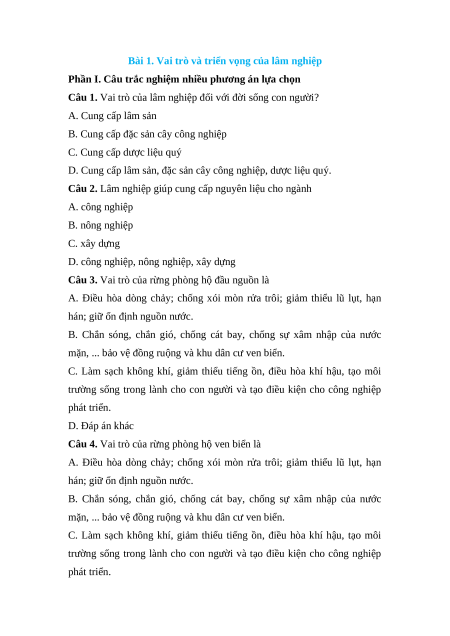 Bài 1. Vai trò và triển vọng của lâm nghiệp