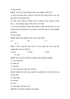 Câu 8. Yêu cầu đối với người lao động trong ngành lâm nghiệp A. Có sức khỏe tốt B. Chăm chỉ C. Chịu khó