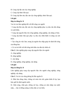 Câu 2. Lâm nghiệp giúp cung cấp nguyên liệu cho ngành A. công nghiệp B. nông nghiệp C. xây dựng