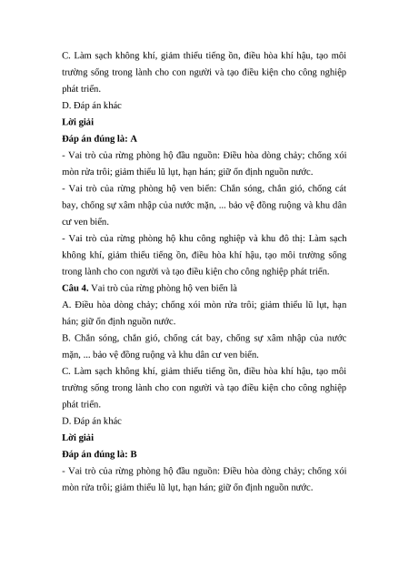 Câu 4. Vai trò của rừng phòng hộ ven biển là