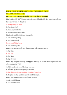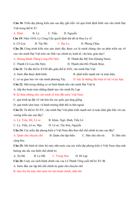 Câu 18. Triều đại phong kiến nào sau đây gắn liền với quá trình định hình của văn minh Đại Việt trong thế kỉ X?