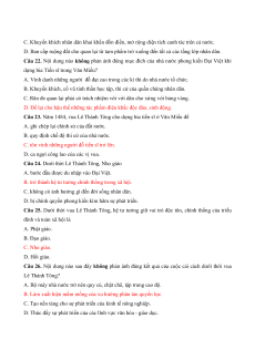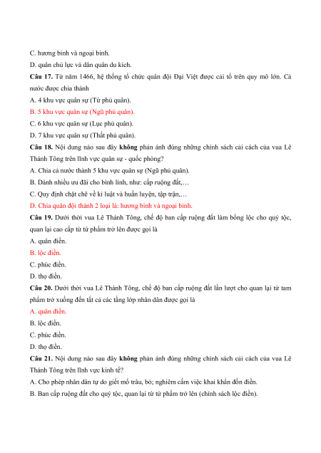 Câu 21. Nội dung nào sau đây không phản ánh đúng những chính sách cải cách của vua Lê