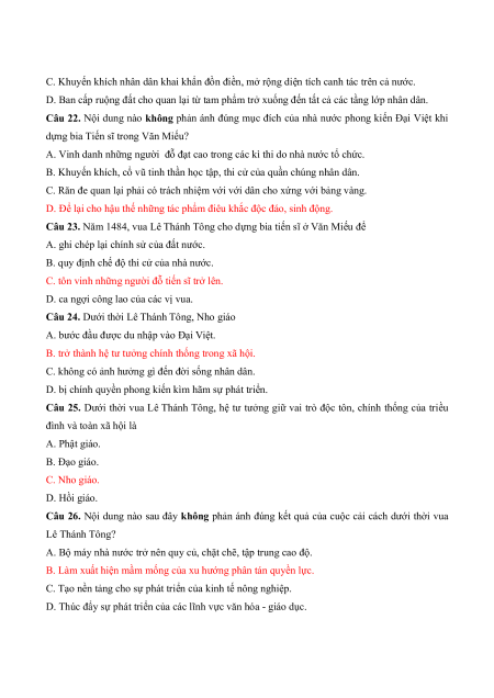 Câu 18. Nội dung nào sau đây không phản ánh đúng những chính sách cải cách của vua Lê