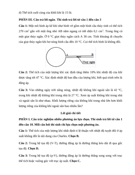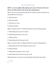 Câu 1: Thể tích của một lượng khí nhất định tỉ lệ thuận với nhiệt độ tuyệt đối ở áp