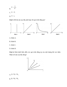 Câu 2: Trong hệ tọa độ (V-T) đường biểu diễn nào sau đây là đường đẳng áp?