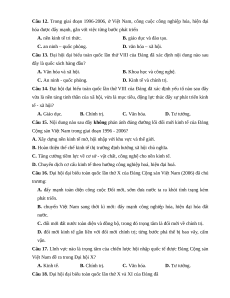 Câu 12. Trong giai đoạn 1996-2006, ở Việt Nam, công cuộc công nghiệp hóa, hiện đại