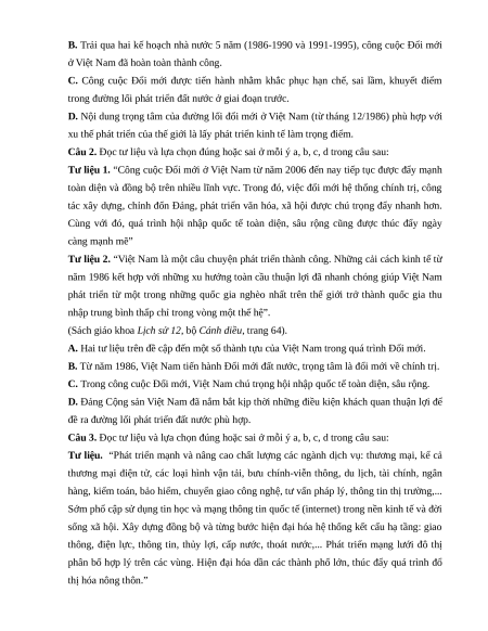 Câu 3. Đảng Cộng sản Việt Nam tiến hành công cuộc đổi mới đất nước (1986) không