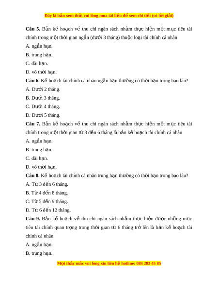 Đây là bản xem th , vu ử i lòng mua tài li u ệ đ xe ể m chi ti t (c ế ó l i ờ gi i ả ) C. dài h n. ạ D. vô th i ờ h n. ạ Câu 10. Kế ho ch t ạ