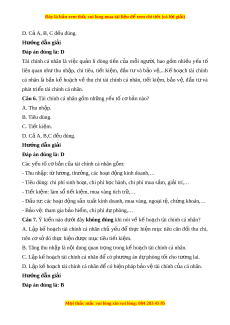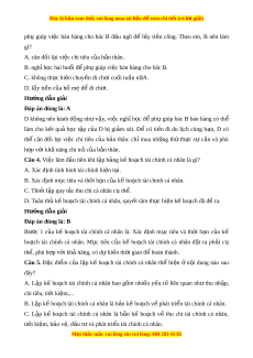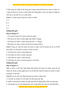 ế à cân đối thu chi và ti t ế ki m ệ . Câu 8. Có mấy lo i ạ k ho ế ch ạ tài chính cá nhân? A. 2. B. 3. C. 4. D. 5. Hư ng d ớ ẫn gi i ả Đáp án đúng là: B - Các lo i ạ k ho ế ch
