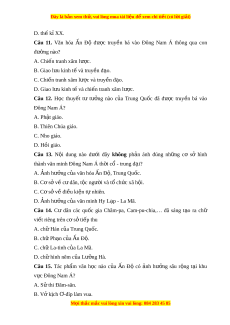 ề bá vào Đông Nam Á thông qua con đư ng nào? ờ A. Chi n t ế ranh xâm lư c. ợ B. Giao l u ki ư nh t và ế truy n đ ề o. ạ C. Chi n ế tranh xâm lư c ợ và truy n đ ề o. ạ D. Giao l u ki ư nh t và chi ế n ế tranh xâm lư c. ợ Câu 12. H c ọ thuy t ế tư tư ng ở nào c a ủ Trung Qu c ố đã đư c ợ truy n ề bá vào Đông Nam Á? A. Ph t ậ giáo. B. Thiên Chúa giáo. C. Nho giáo. D. Hồi giáo. Câu 13. N i ộ dung nào dư i ớ đây không ph n ả ánh đúng nh ng ữ cơ sở hình