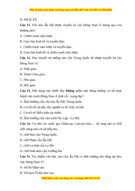 Đây là bản xem th , vu ử i lòng mua tài li u ệ đ xe ể m chi ti t ế (có l i ờ gi i ả ) D. th k ế X ỉ X. Câu 11. Văn hóa n Ấ Độ đư c ợ truy n