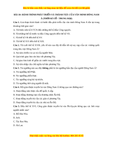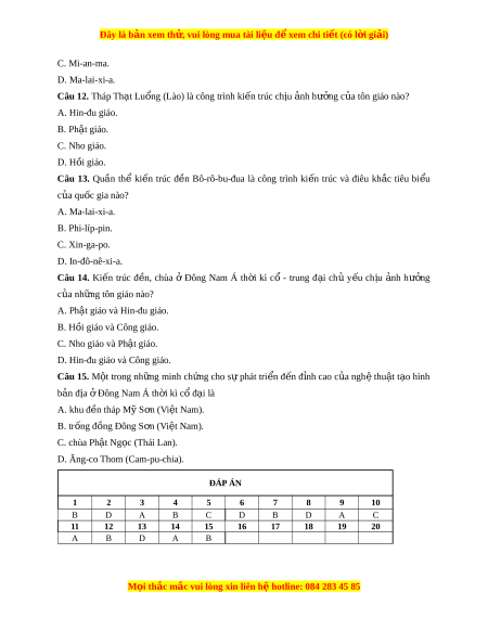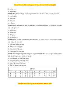 ở ông Nam Á thời kì c đ ổ i ạ là A. khu đ n t ề háp Mỹ S n (V ơ i t ệ Nam). B. tr ng đ ố ng Đ ồ ông S n (V ơ iệt Nam). C. chùa Phật Ng c ọ (Thái Lan). D. Ăng-co Thom (Cam-pu-chia). ĐÁP ÁN 1 2 3 4 5 6 7 8 9 10 B D A B C D B D A C 11 12 13 14 15 16 17 18 19 20 A B D A B M i