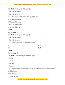 Câu 3. Có mấy loại tác nhân gây bệnh: A. 1 B. 2 C. 3 D. 4 Trả lời Đáp án đúng: B
