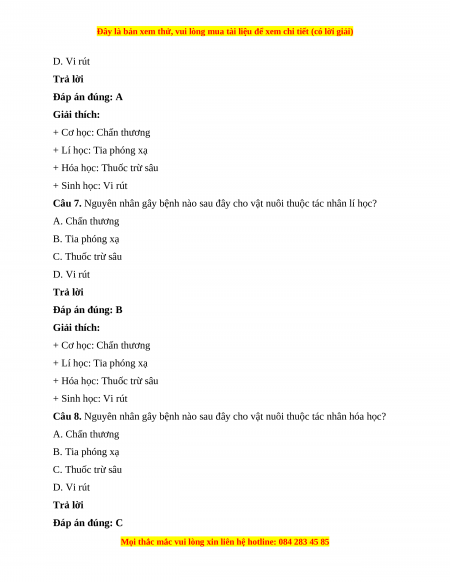 Câu 6. Nguyên nhân gây bệnh nào sau đây cho vật nuôi thuộc tác nhân cơ học? A. Chấn thương B. Tia phóng xạ C. Thuốc trừ sâu