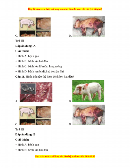 Câu 10. Hình ảnh nào thể hiện bệnh gạo ở lợn? A. B.