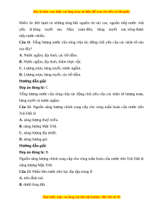 Câu 12. Ngu n năng l ng chính cung c p cho vòng tu n hoàn c a n c trênồ ượ ấ ầ ủ ướ
