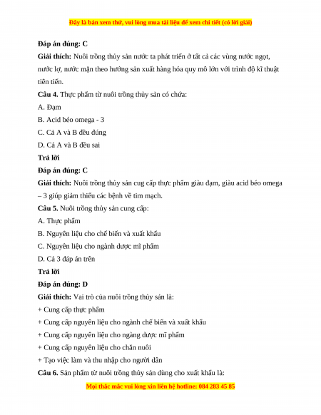 Câu 5. Nuôi trồng thủy sản cung cấp: A. Thực phẩm