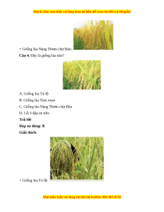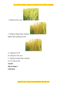 Đây là bản xem th , vu ử i lòng mua tài li u ệ đ xe ể m chi ti t (c ế ó l i ờ gi i ả ) A. Giống lúa Tú lệ B. Giống lúa Tám xoan C. Giống lúa Nàng Th m ơ ch Đ ợ ào D. C 3 đáp án ả trên Trả l i ờ Đáp án đúng: A Giải thích: + Giống lúa Tú l : ệ + Giống lúa Tám xoan: M i
