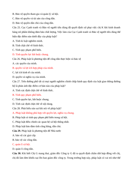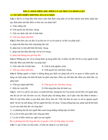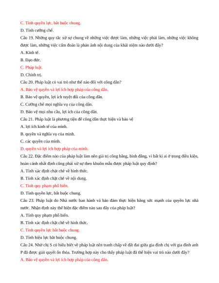 Câu 22. Đặc điểm nào của pháp luật làm nên giá trị công bằng, bình đẳng, vì bất kì ai ở trong điều kiện,