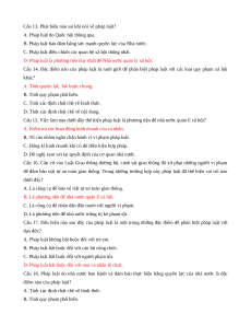 Câu 13. Phát biểu nào sai khi nói về pháp luật?