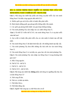 MINH ĐÔNG NAM Á THỜI KÌ C - Ổ TRUNG Đ I Ạ Câu 1. N i ộ dung nào dư i ớ đây ph n
