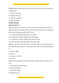 Câu 10. Đ n Bô-rô-bu-đua (In-đo-nê-xi-a) đ c x p vào lo i hình ki n trúcề ượ ế ạ ế