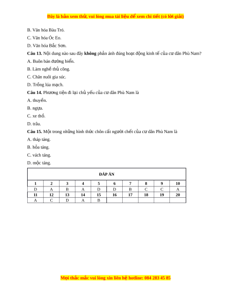 Đây là bản xem th , vu ử i lòng mua tài li u ệ đ xe ể m chi ti t (c ế ó l i ờ gi i ả ) B. Văn hóa Bàu Tró. C. Văn hóa Óc Eo. D. Văn hóa Bắc S n. ơ Câu 13. N i
