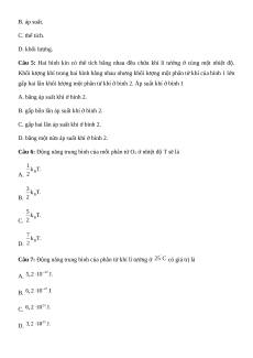 Câu 5: Hai bình kín có thể tích bằng nhau đều chứa khí lí tưởng ở cùng một nhiệt độ.