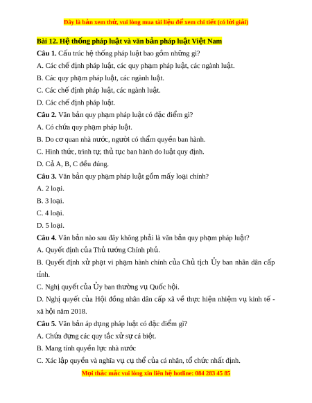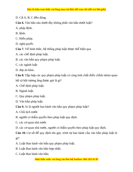 Đây là bản xem th , vu ử i lòng mua tài li u ệ đ xe ể m chi ti t (c ế ó l i ờ gi i ả ) D. C ả A, B, C đ u ề đúng. Câu 6. Văn b n nào d ả ư i ớ đây không ph i ả văn b n ả dư i ớ lu t ậ ? A. pháp l nh. ệ B. l nh. ệ C. Hi n pháp. ế D. nghị quy t ế .