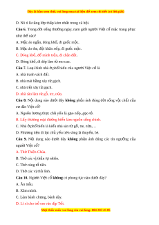 Đây là bản xem th , vu ử i lòng mua tài li u ệ đ xe ể m chi ti t (c ế ó l i ờ gi i ả ) D. Nô tì là t ng l ầ p t ớ h p kém ấ nh t ấ trong xã h i ộ . Câu 6. Trong đ i ờ s ng ố thư ng ờ ngày, nam gi i ớ ngư i ờ Vi t ệ c ổ m c ặ trang ph c ụ nh t ư hế nào? A. M c ặ áo ng n, đóng kh ắ ố, đi gu c ố m c. ộ B. M c ặ áo the, đ i ộ khăn x p, ế đi gu c m ố c. ộ