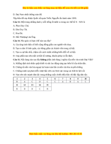 Đây là bản xem th , vu ử i lòng mua tài li u ệ đ xe ể m chi ti t (c ế ó l i ờ gi i ả ) D. Đại Nam nhất th ng t ố oàn đ . ồ Tập bản đ nà ồ y được Qu c ố s quá ử n Tri u N ề guy n ễ ấn hành năm 1838. Câu 13. M t ộ trong nh ng ữ danh y n i ổ ti ng ế n ở ước ta trong các th k ế X ỉ - XIX là A. Phan Huy Chú. B. Đào Duy T . ừ C. Hoa Đà. D. Hải Thư ng L ợ ãn Ông.