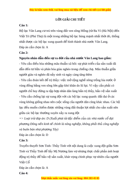 Đây là bản xem th , vu ử i lòng mua tài li u ệ đ xe ể m chi ti t ế (có l i ờ gi i ả ) B. Tr ng nghĩ ọ a khí. C. Chống ngo i ạ xâm D. Tr ng văn ọ Câu 6: Th i ờ Văn Lang, nư c ớ ta đư c